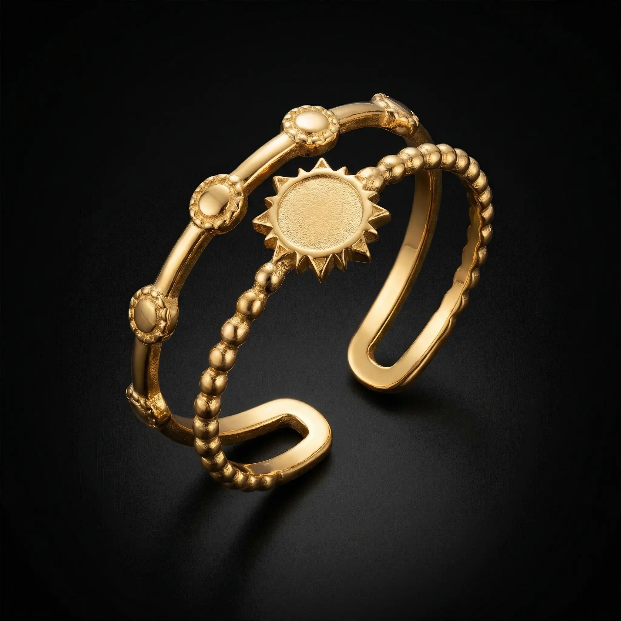 Réalisée en acier inoxydable, cette belle bague dorée est un accessoire indispensable. Elle a une finition lisse et brillante qui attire l’attention, tandis que le plaquage en or ajoute une touche de luxe supplémentaire. Elle est confortable à porter, ajustable et s’adapte parfaitement à votre doigt. Cette bague est une excellente option pour les amateurs de bijoux qui apprécient le style et l’élégance.
