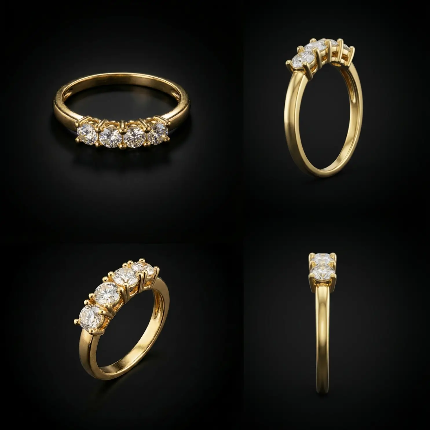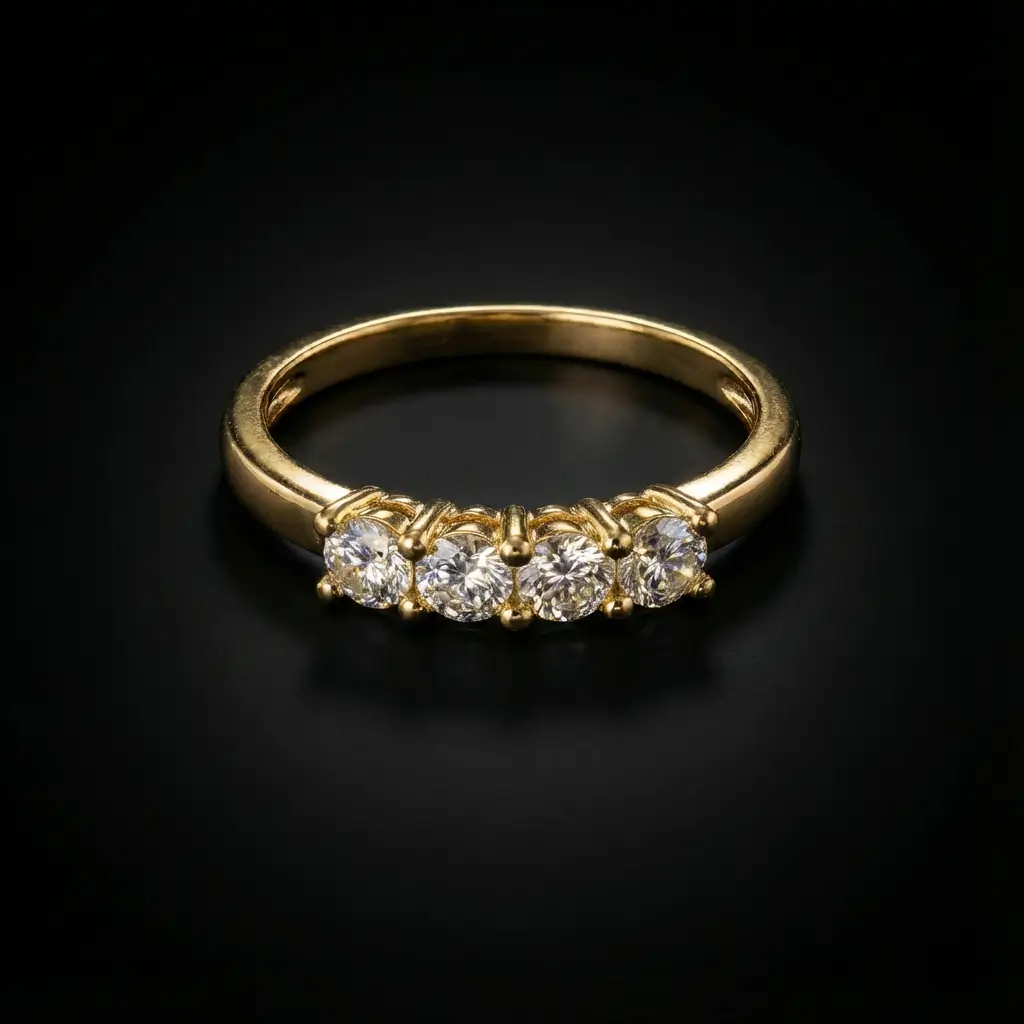Les bagues en acier inoxydable doré se sont imposées comme un must-have pour celles qui veulent un bijou brillant, solide et accessible. Cette bague four stones XP associe un anneau doré lisse à quatre zircons AAA ronds sertis griffes, inspirés des alliances serties de diamants.