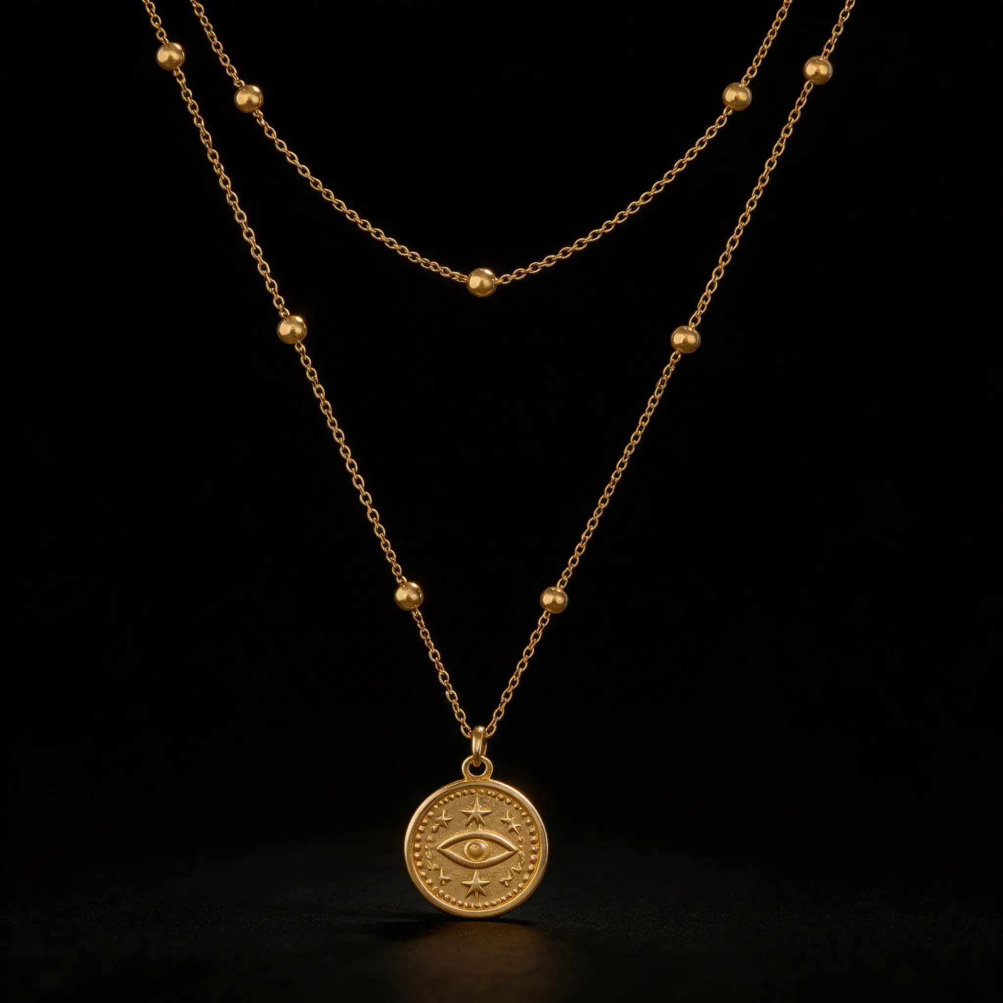 Notre collier en double chaîne en acier inoxydable avec pendentif en forme de pièce de monnaie ornée d’un œil est un accessoire sophistiqué et robuste pour toutes les occasions. Fabriqué en acier inoxydable de haute qualité, ce collier ajoutera une touche de mystère et d’élégance à votre tenue. Il peut être porté seul ou superposé avec d’autres colliers pour un look plus complexe. Offrez-le en cadeau à une amie ou à un être cher qui apprécie les bijoux élégants. Commandez dès maintenant et ajoutez cette pièce unique à votre collection.