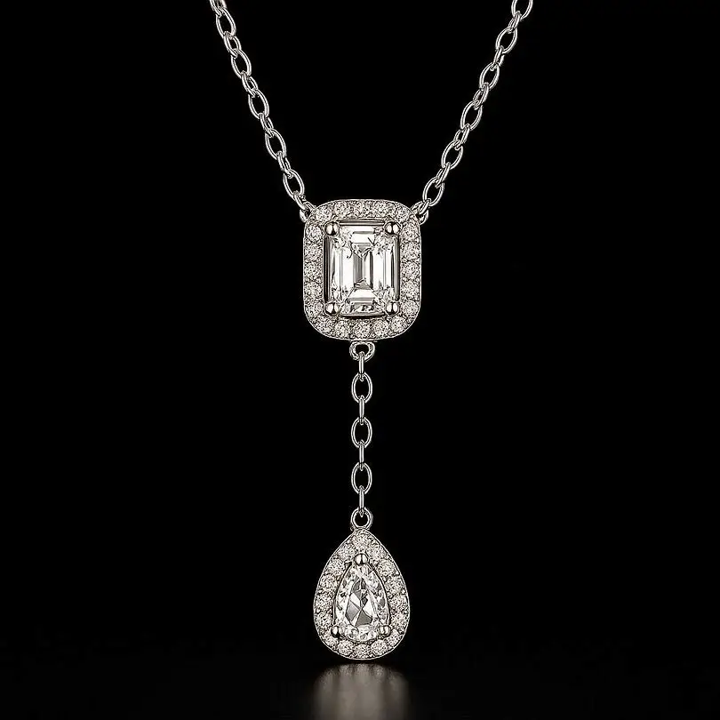 Bijou à la fois simple et intemporel, notre chaîne argentée avec des magnifiques pierres en zircon scintille et brille à chaque mouvement. Fabriquée à partir de cuivre de haute qualité et rhodiée avec une double couche argenté pour un fini brillant et élégant.