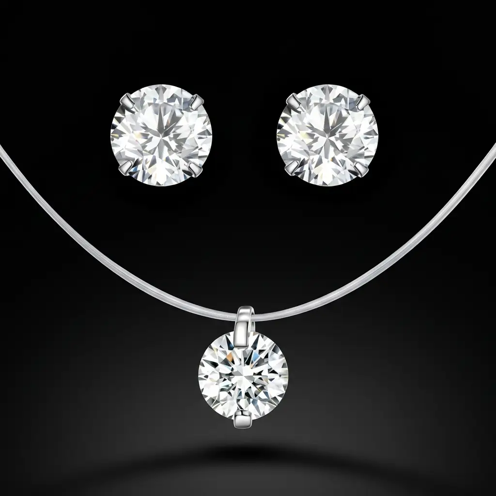 Collier Ras de Cou transparent avec de superbes boucles d’oreilles 100% Argent 925 et Zircon